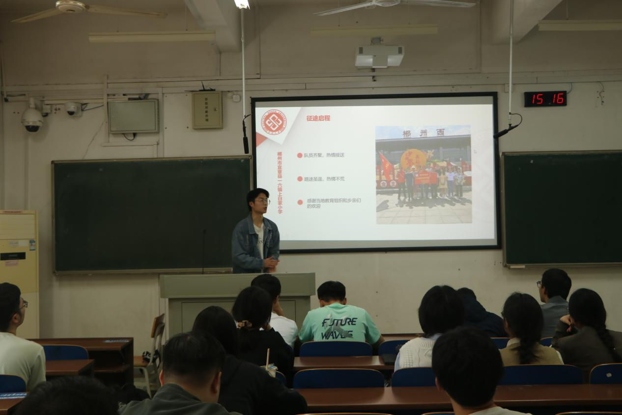 随后,“知行湘伴”志愿服务队队长吴思汉向大家分享了自己和团队成员赴湖南省郴州市宜章县一六镇上白家村上白家小学进行支教的经历。团队采用创新型“3+2”支教模式,在传统支教的基础上,增加了课外扩展、线下家访的环节。这给大家提供了新颖的、具有启发性的活动设计思路。