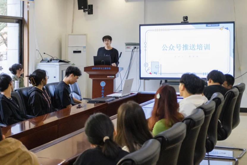10月17日下午2点,第七期“材子开讲啦”——“会议上的摄影师”的学习交流活动在特冶楼229举行,本次主讲人为2021级硕士刘家睿和2022级硕士李庆乾,分别分享了“会议摄影的技巧”和“推送制作经验”,研究生辅导员、院分团委副书记罗吴赞出席活动。