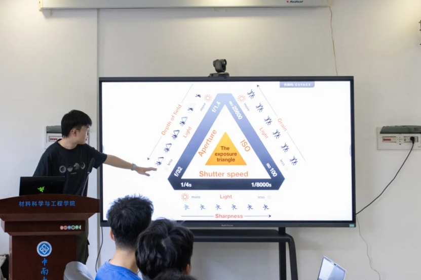 刘家睿同学围绕摄影的前期准备、拍摄过程中的注意事项以及图片的后期处理等方面进行了分享。在案例分析环节中,同学们积极发言,共同探讨解决方案。